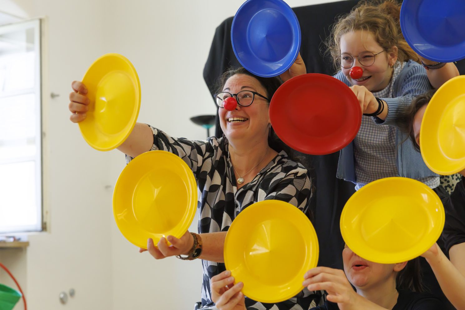 Fotografie – Teilnehmende bei der Acting Academy Fotografie – Teilnehmende des Workshops ClownerieFotografie –  verschiedene Teilnehmende an den Workshops Fotografie – Einblicke in den Workshop "Tanz/Bewegungstheater"