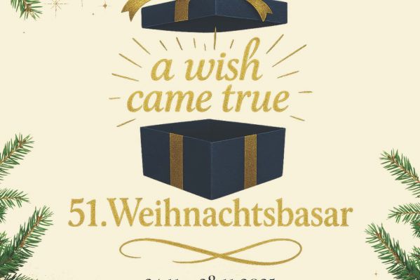 14.11.2025Vorankündigung: In der Woche vom 24. - 28. November 2025 finder der 51. Weihnachtsbasar in der neuen Aula am Ziegelweg statt. Eröffnung ist um 12.30 Uhr. Wir freuen uns auf Ihren Besuch