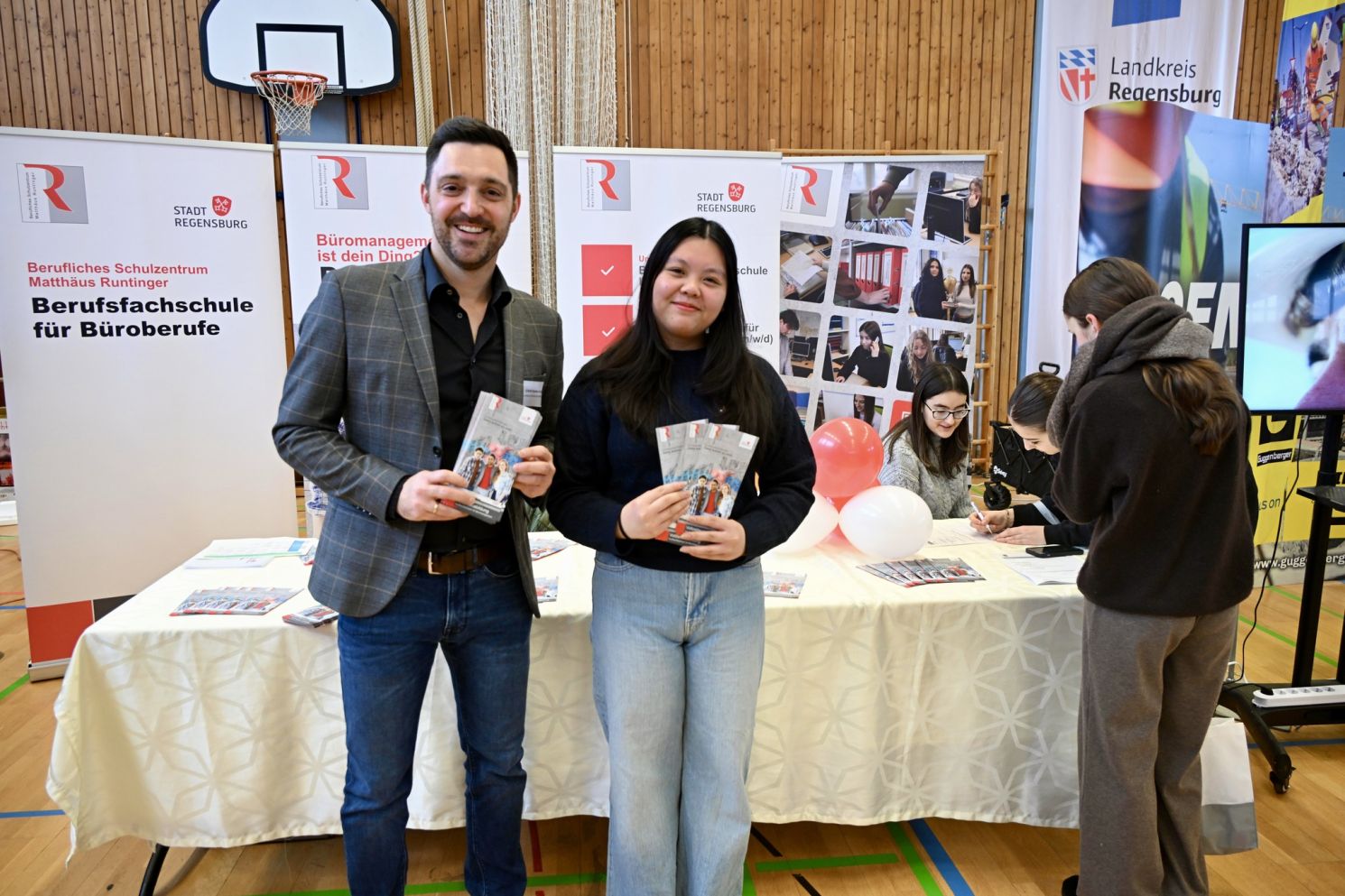 Die BFS Regensburg für Büroberufe war kürzlich auf Berufs- und Ausbildungsmessen an den Mittelschulen Neutraubling und Hemau vertreten. Die Organisation und Durchführung der Messebesuche lag in den Händen von Herrn Groitl, der unsere Schule engagiert und kompetent nach außen präsentierte.