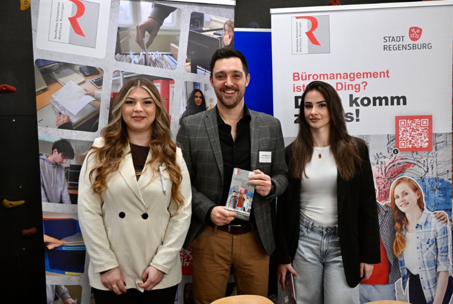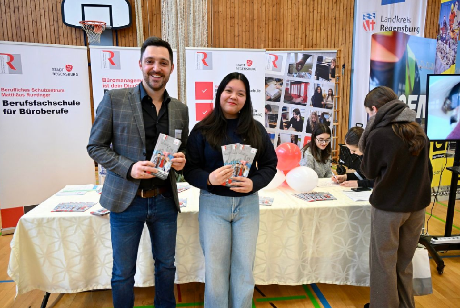 Die BFS Regensburg für Büroberufe war kürzlich auf Berufs- und Ausbildungsmessen an den Mittelschulen Neutraubling und Hemau vertreten. Die Organisation und Durchführung der Messebesuche lag in den Händen von Herrn Groitl, der unsere Schule engagiert und kompetent nach außen präsentierte.