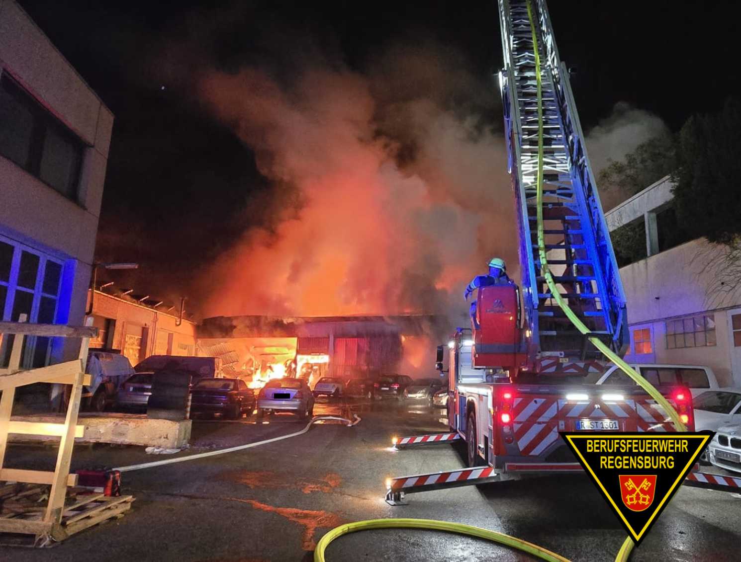 Am frühen Morgen des 7. Januar 2026 wurde die Feuerwehr zum Vollbrand einer Lagerhalle am Auweg in Regensburg alarmiert. Der langwierige Einsatz von bis zu zwölf eingesetzten Feuerwehren konnte erst am Vormittag des darauffolgenden Tages abgeschlossen werden.