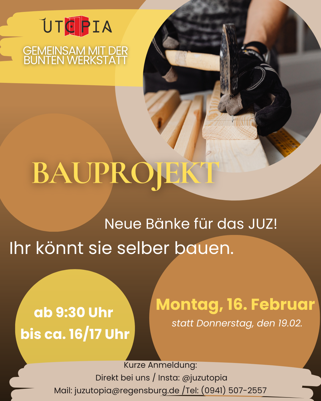 Am Montag (16. Februar) wollen wir zusammen mit euch neue Möbel für unser Außengelände bauen...