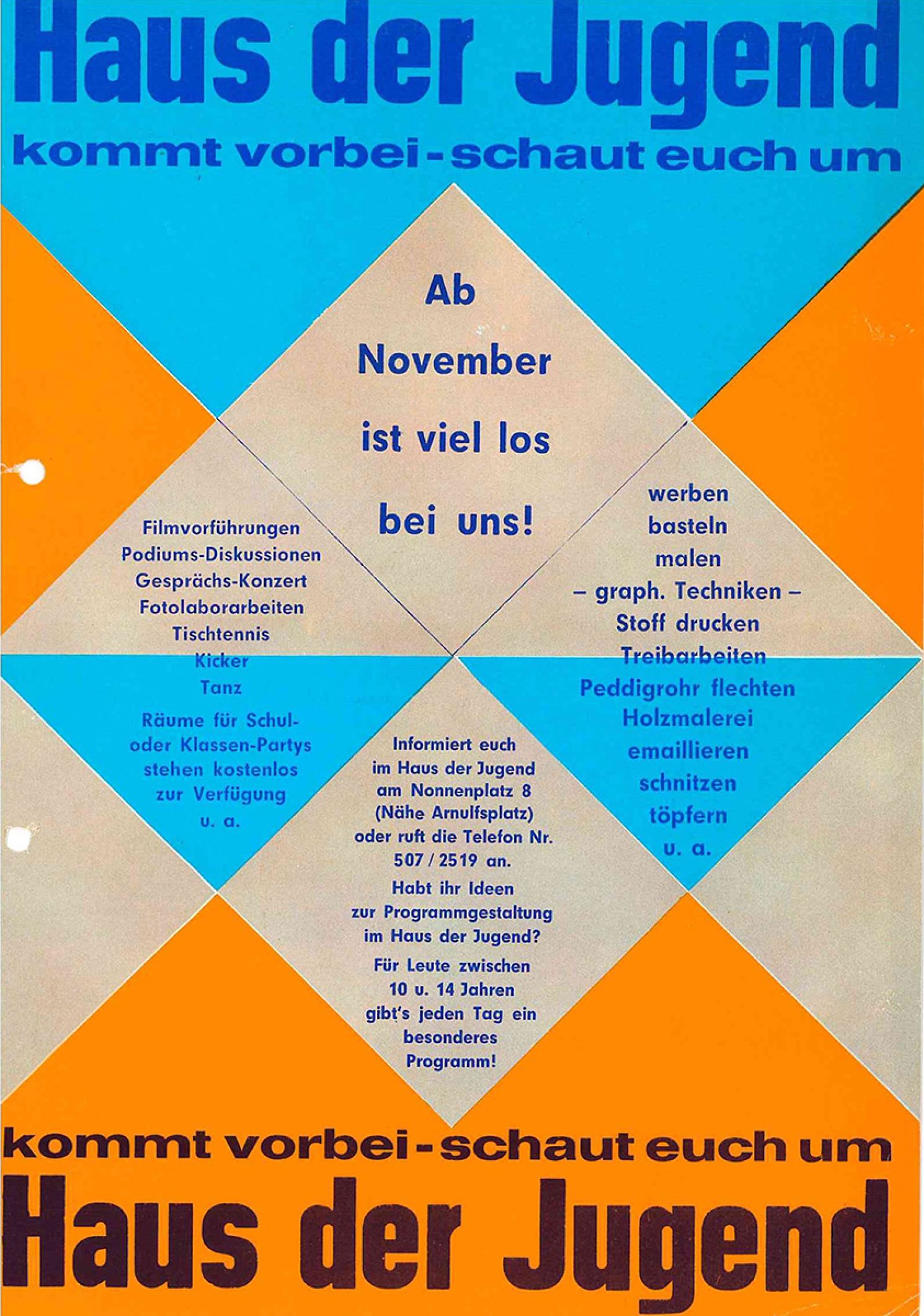 - neue Jugendzentren: 1977 Weingasse, 1983 Königswiesen, 1989 Jugendtreff Stadtnorden, 1990 Fantasy