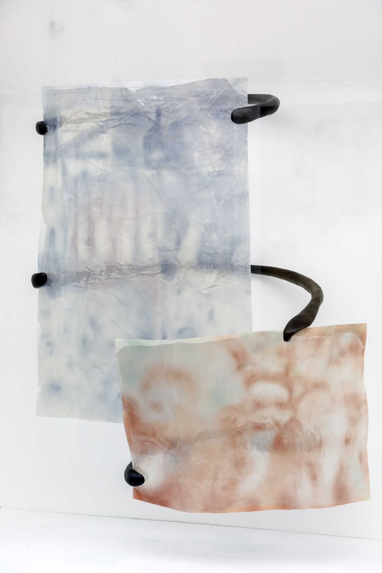 Léa Bouttier hat sich im Rahmen ihres Artist-in-Residence-Aufenthalts vor allem mit der Geschichte des Kunstfälschers Lothar Malskat befasst. Diese veranlasste Léa Bouttier zu einer Reflexion über den Wert, den wir Bildern beimessen, und ihrer Veränderung im Laufe der Zeit. Das Ergebnis waren Skulpturen mit einer Harzoberfläche, in die eine Reihe farbiger, abstrakter Formen aus Pastellkreide eingearbeitet sind, bei denen es sich um veränderte Bilder aus Zeitungen handelt, die im Verschwinden begriffen sind und keine Informationen mehr vermitteln.