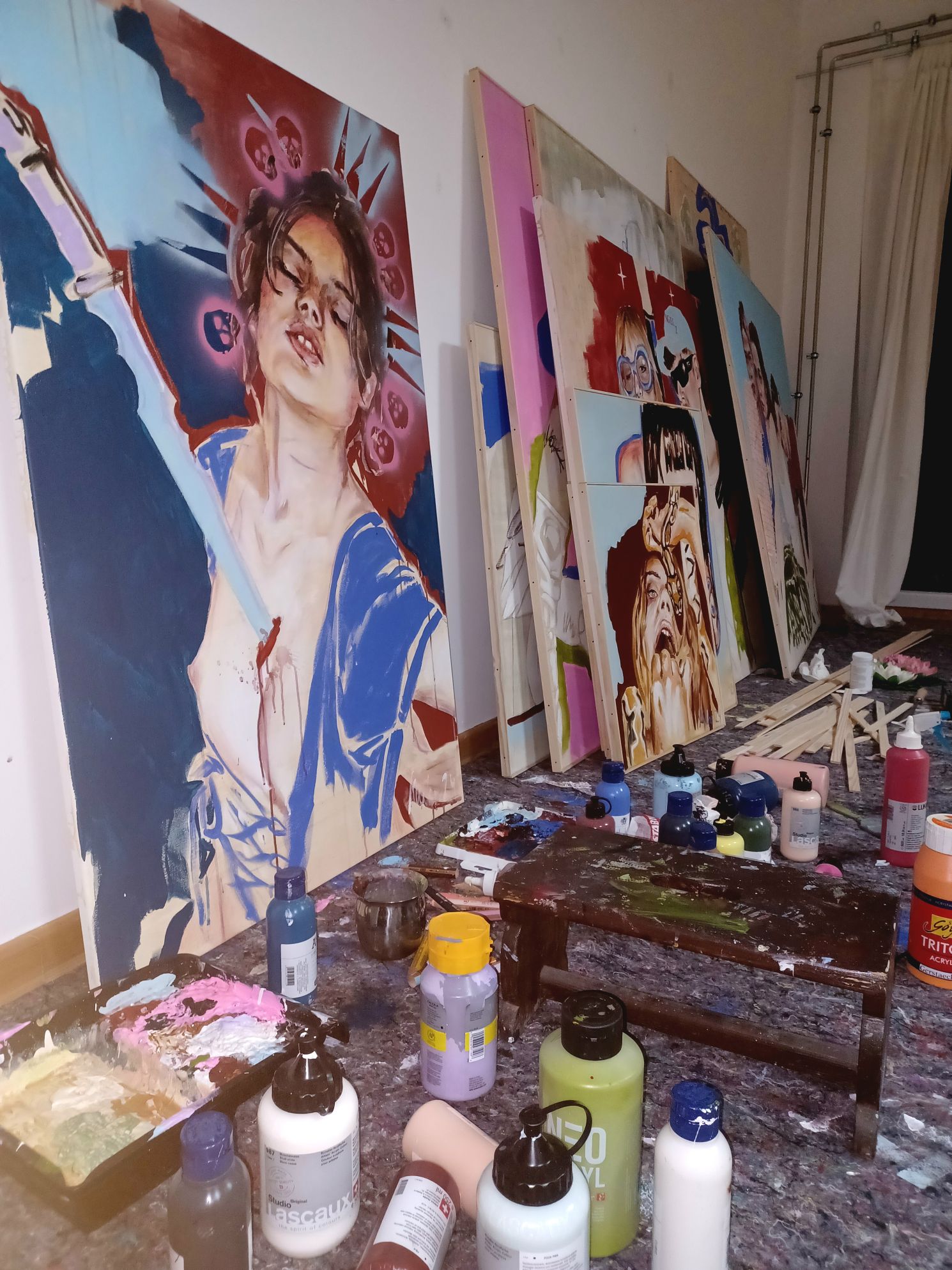 Das Atelierhaus „Hafenkombinat“ in Leipzig bot eine Wohneinheit für zwei Künstler*innen aus dem CreArt-Netzwerk, das einen gemeinsamen Atelierraum beinhaltete. Die Kombination mit Petra Šabić wirkte von den Organisator*innen gut durchdacht, da sich schnell künstlerisch zahlreiche Anknüpfungspunkte zeigten. Unter dem Titel „De/Construction of Painting“ fand eine Doppelausstellung mit Petra Šabić bei Colorado Projects – einem Raum in der Galerie Jochen Hempel für junge Positionen – in der Baumwollspinnerei statt. Eine Gelegenheit, die sich erst vor Ort ergeben hatte und das ursprünglich angedachte „Offene Atelier“ ersetzte.