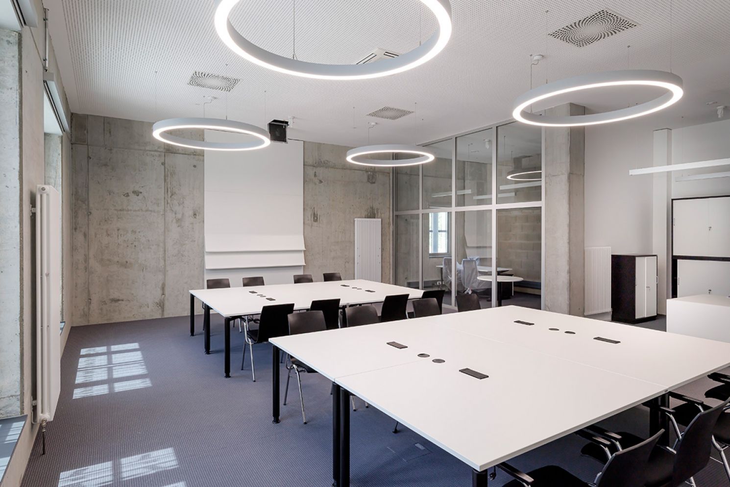 Eine sehr gute Energieeffizienz wird erreicht durch die Nutzung von Umweltwärme in Verbindung mit der Bauteilaktivierung der sowieso vorhandenen massiven Boden- und Deckenplatten und der dadurch möglichen niedrigen Vorlauftemperaturen.