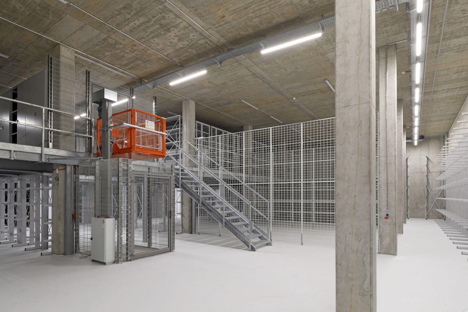 Für die optimale Lagerung der Kulturgüter wurde ein weitestgehend klimastabiles Gebäude mit umfassendem Lagertechnikkonzept, komplexem Klimakonzept sowie einem Sicherheitskonzept erarbeitet.
