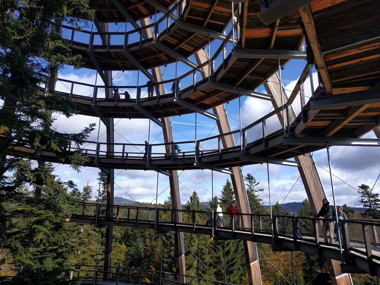 Begleitet durch zehn Lehrkräfte sowie der Sozialpädagogin Frau Wesemann bestiegen die Kinder zunächst den 44 Meter hohen Baumturm des Baumwipfelweges. Bei bester Fernsicht bot sich ein einzigartiger Blick über das Meer des Bayerischen und Böhmischen Waldes. Beim anschließenden Rundgang durch den Nationalpark konnten die Kinder neben Elchen, Wildschweinen und einem Luchs sogar einen Braunbären bestaunen. Angekommen im Ferienhaus Lambach stärkten sich die Fünftklässler am reichhaltigen und leckeren Buffet.