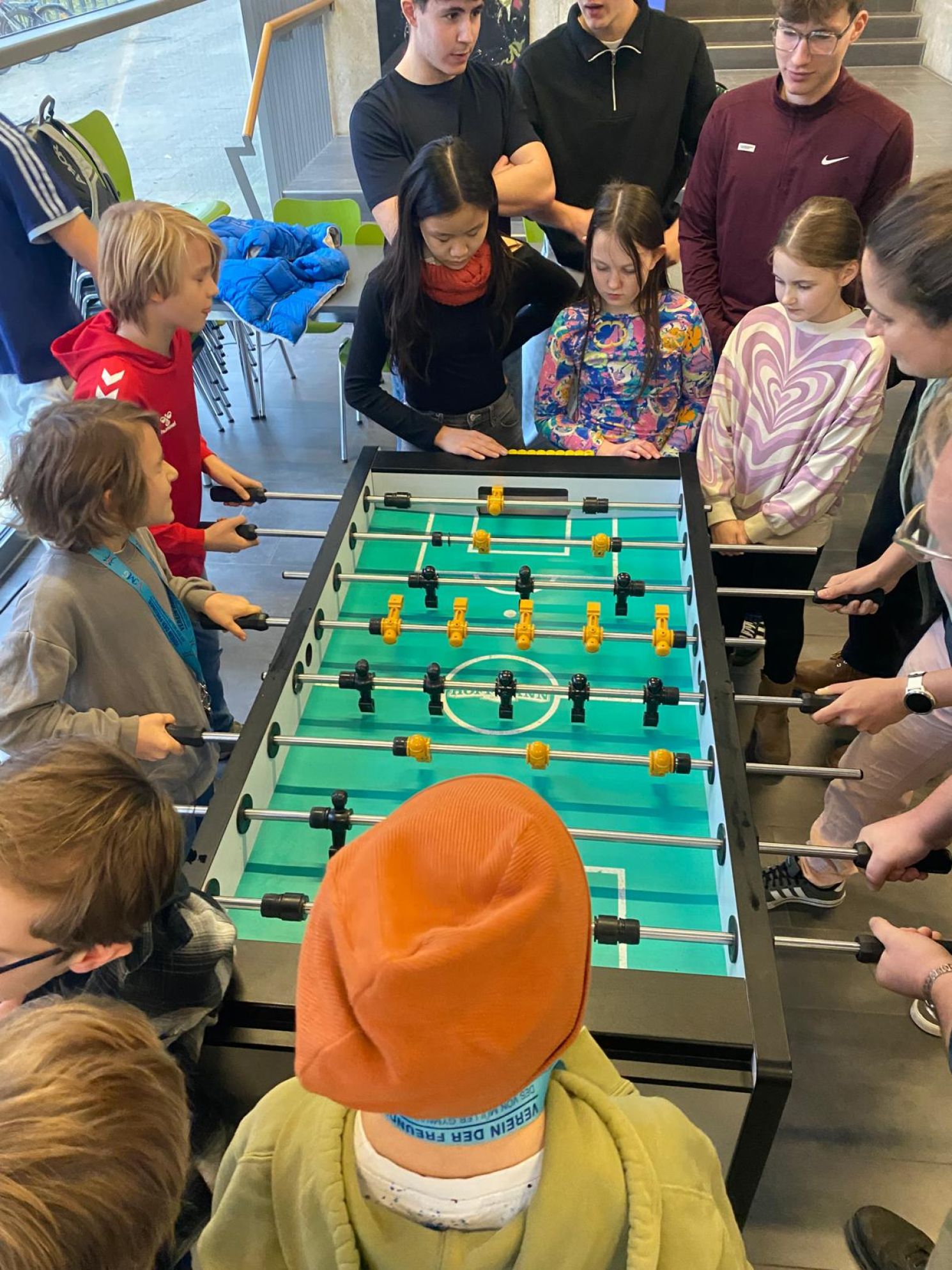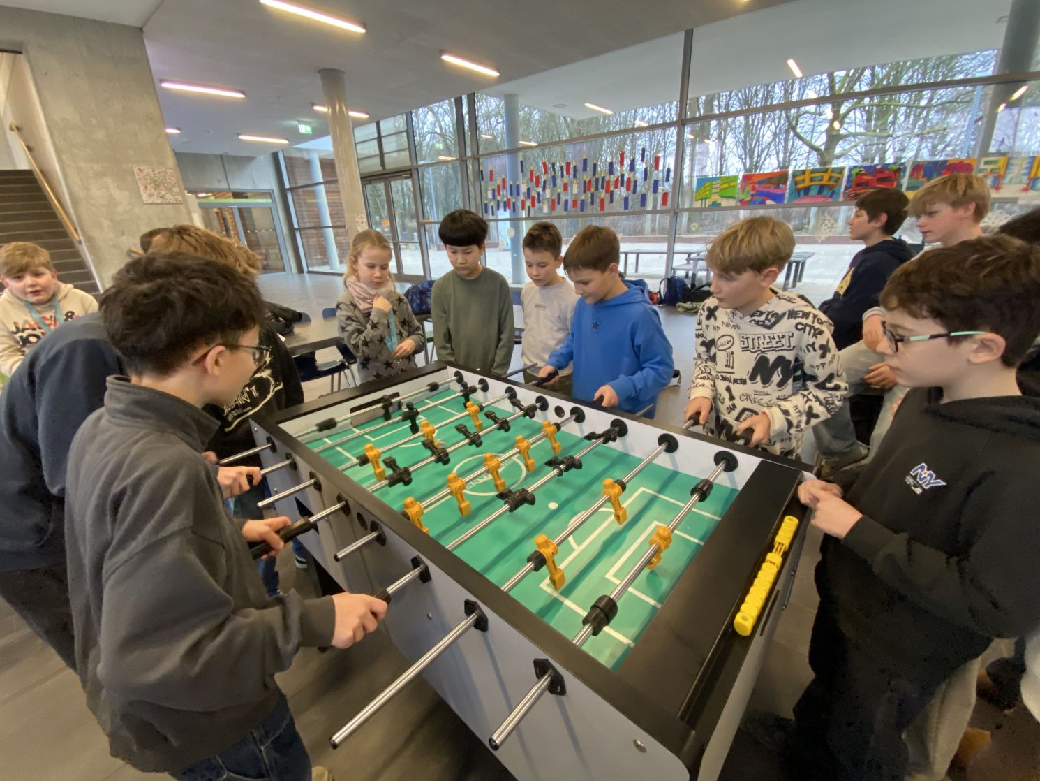 Zum ersten Mal fand an unserer Schule ein schulweites Kickerturnier statt – und das mit großem Erfolg. Insgesamt 16 Mannschaften aus allen Jahrgangsstufen nahmen an dem Turnier teil. Besonders erfreulich war, dass sich unter den Teams auch ein Lehrerteam befand, das sich dem sportlichen Wettbewerb stellte.